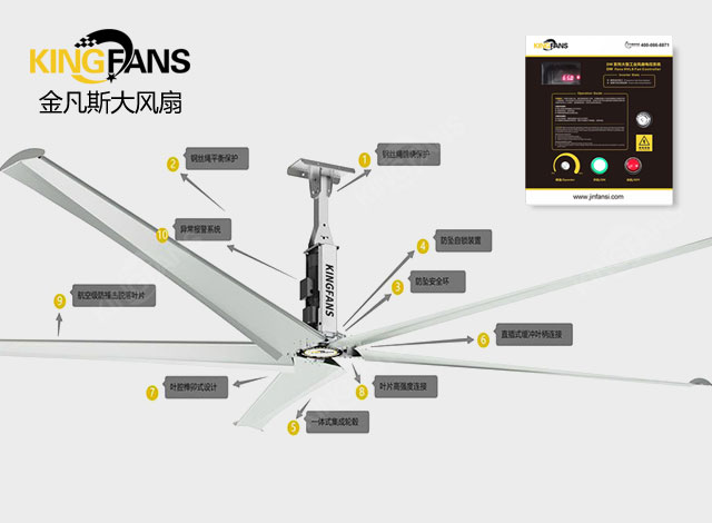 安全技術(shù):金凡斯特有十重安全保障,多項(xiàng)專利技術(shù),保證工業(yè)大風(fēng)扇的安全運(yùn)行,風(fēng)扇整體、各部件不會發(fā)生松動、斷裂或墜落,從根本上保護(hù)用戶使用安全。